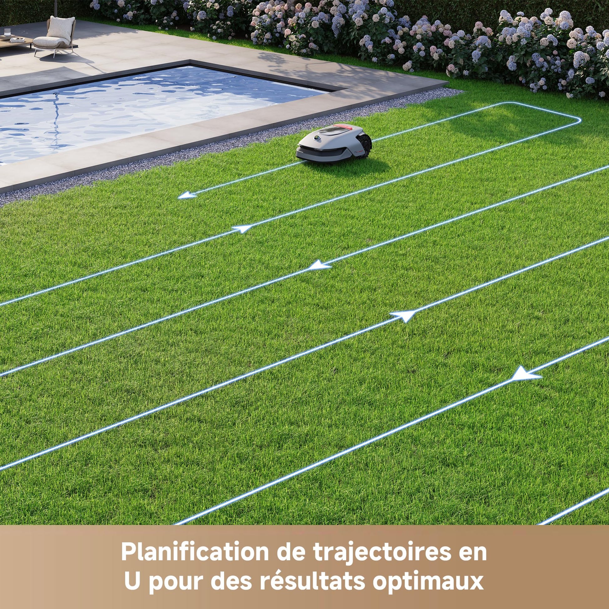 • Planification de trajectoires en U pour des résultats optimaux: L'A1 Pro fonctionne selon une trajectoire en U novatrice qui couvre parfaitement votre pelouse, pour une uniformité et une qualité de coupe impressionnantes; Des terrains spacieux jusqu'à 2 000 m² peuvent être entièrement entretenus en seulement 24 heures*