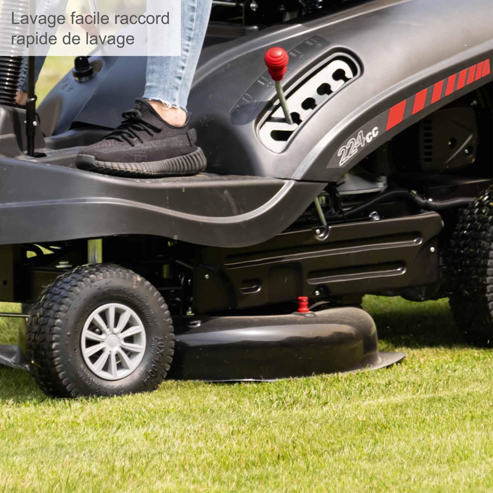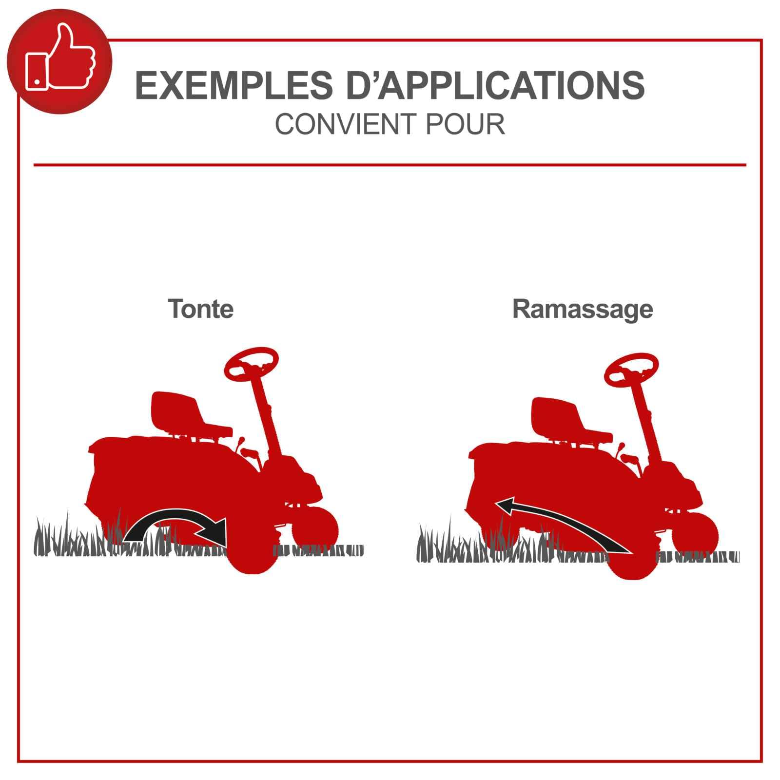 • En outre de toutes ses qualités, cette tondeuse à gazon autoportée possède une largeur de coupe de 61 cm et 5 hauteurs de coupes réglables de 35 à 75 mm afin d'adapter la coupe à vos souhaits et votre pelouse
